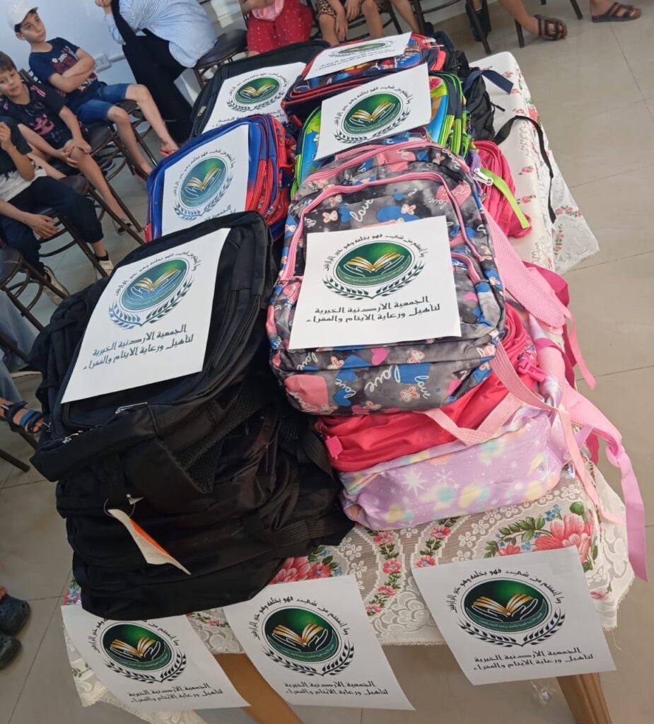 بالتعاون مع مبادرة ( بنات فينا خير ) قامت الجمعية الاردنية الخيرية بتوزيع الحقائب المدرسية والقرطاسية على مجموعة من الاطفال المكفولين في الجمعية ، وتخلل النشاط تلاوة عطرة من القرآن الكريم وعدد من الانشطة الفعالة التي تمثلت بفقرة تحديات رياضية و تحديات فكرية شهدت تفاعلاً بنّاءً من الاطفال المشاركين وتم ختام الفعالية بفقرة رسم على الوجه وتوزيع القرطاسية والحقائب المدرسية .